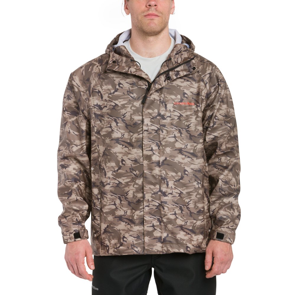 Full-zippered hooded jacket made from medium-weight polyurethane-coated polyester fabric provides 100% waterproof protection and the comfort and ease of movement active fishermen need. An athletic cut and underarm gussets deliver protection without restricting fishing action.