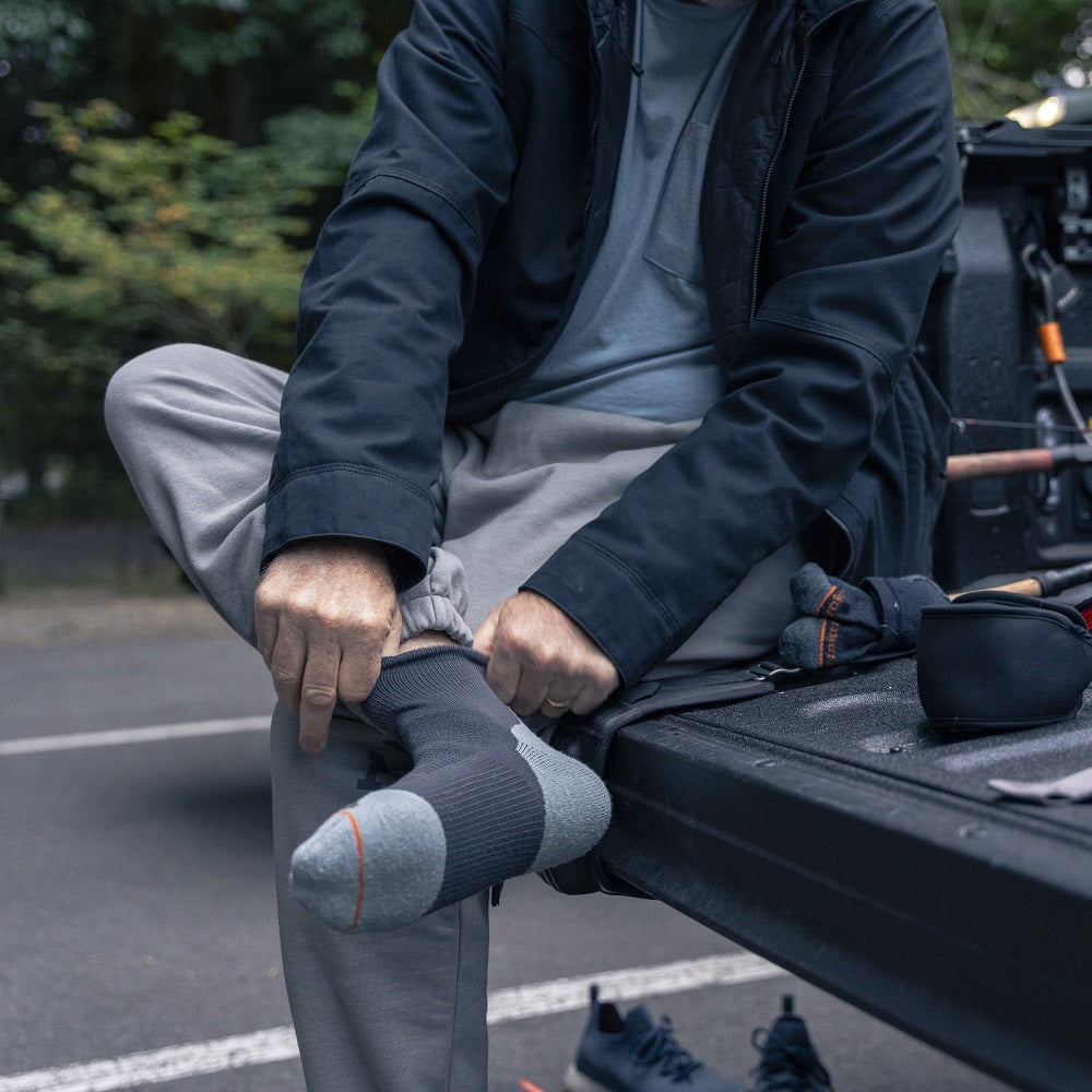 Comfort starts from the inside, out. Naturally insulating, moisture wicking and antimicrobial - Merino Wool and Repreve recycled yarns wrap your feet in cushioned comfort. High-power instep elastic locks in a blister-free fit. Nylon reinforcement yarns at heel and toe boost durability. We’re so confident in our USA made, sustainably sourced socks that we’re putting a lifetime warranty behind them. If your socks fail, we'll replace them, no questions asked.