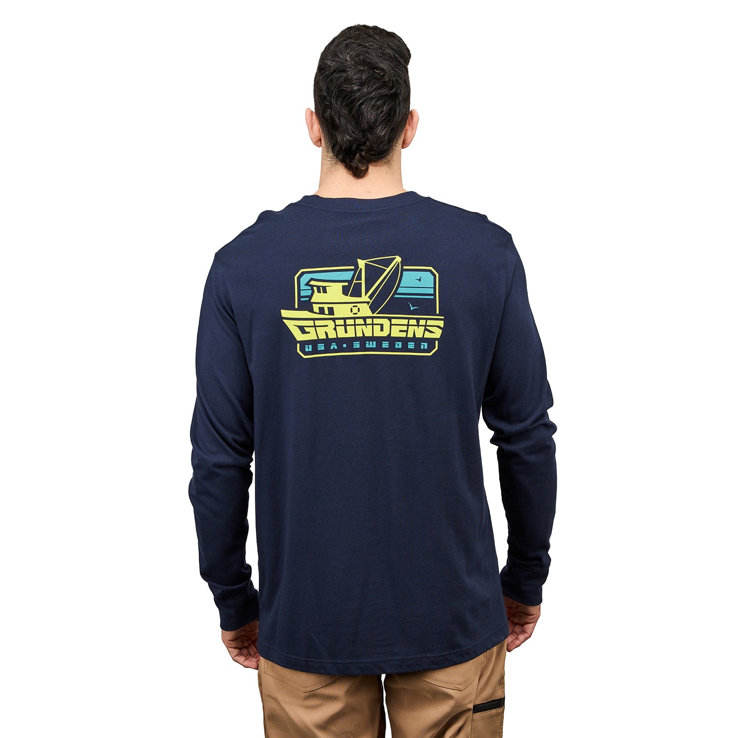 An ultra-soft 50/50 cotton-poly long sleeve tee made with a little love and elbow grease. Featuring a custom Grundéns Commercial Boat graphic to rep your fishing lifestyle on and off the water.