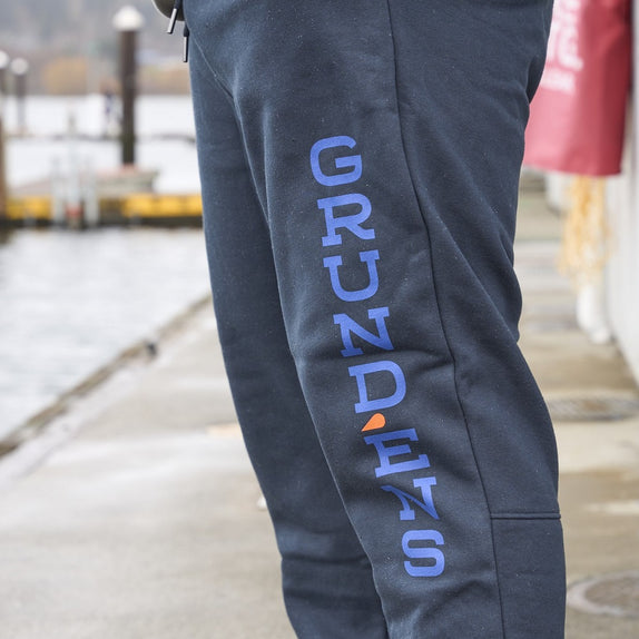 Our best-selling Dillingham Cotton/Polyester mid-weight sweatshirt fabric in a loungy bottom designed to go the distance. Two drop hand warmer pocket and one rear pocket. Drawstring gathered elastic waist. Bold Grundéns leg logo.
