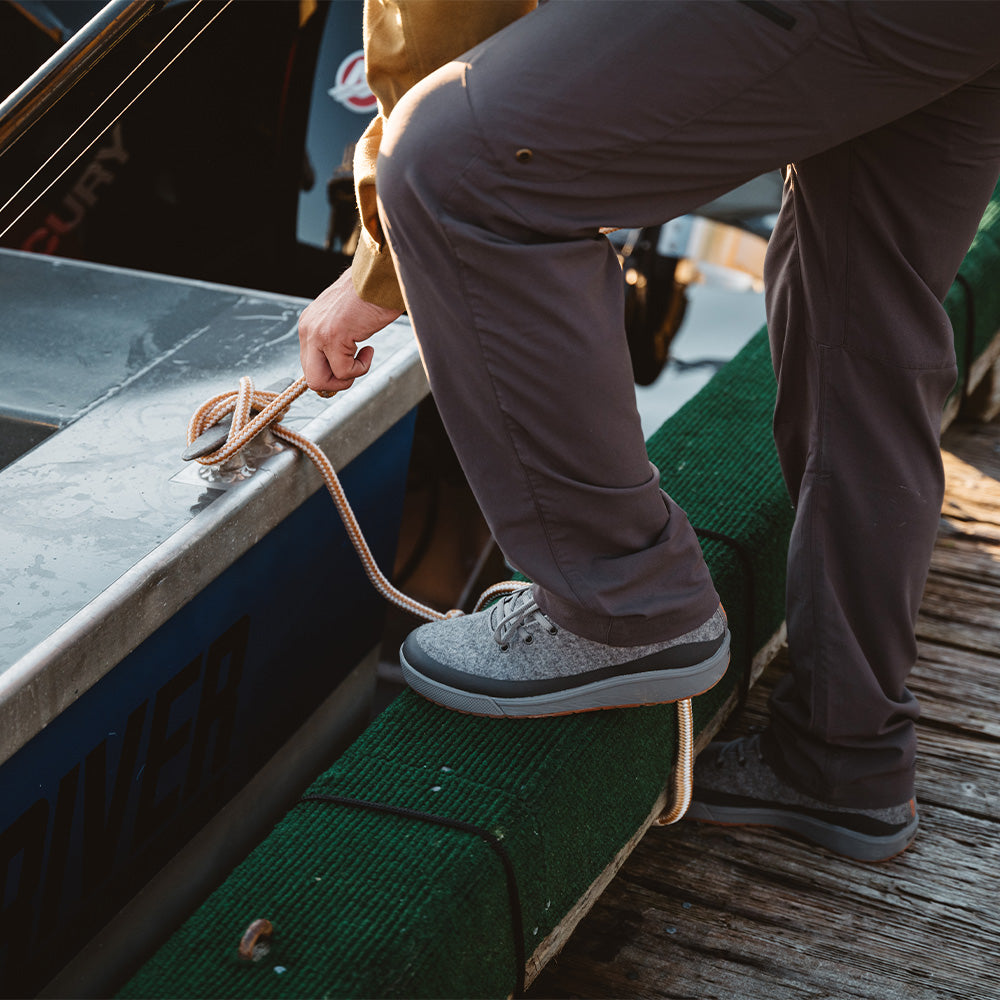 Looking for a pair of shoes that enable you to go from boat to dinner with ease and style? Look no further than our Freeboard Wool Chukka. The natural performance benefits of merino wool mean your feet will stay cool when its warm and warm when it's cool, keeping foot funk away at the same time. Combined with a non-marking, razor siped sole makes these the perfect one shoe quiver for any adventure.