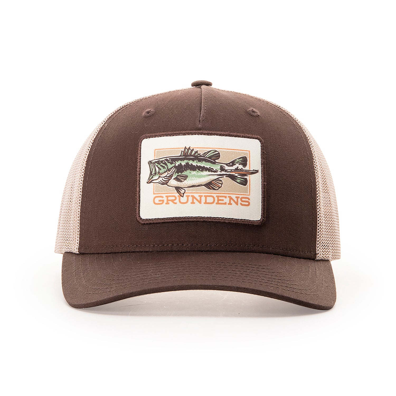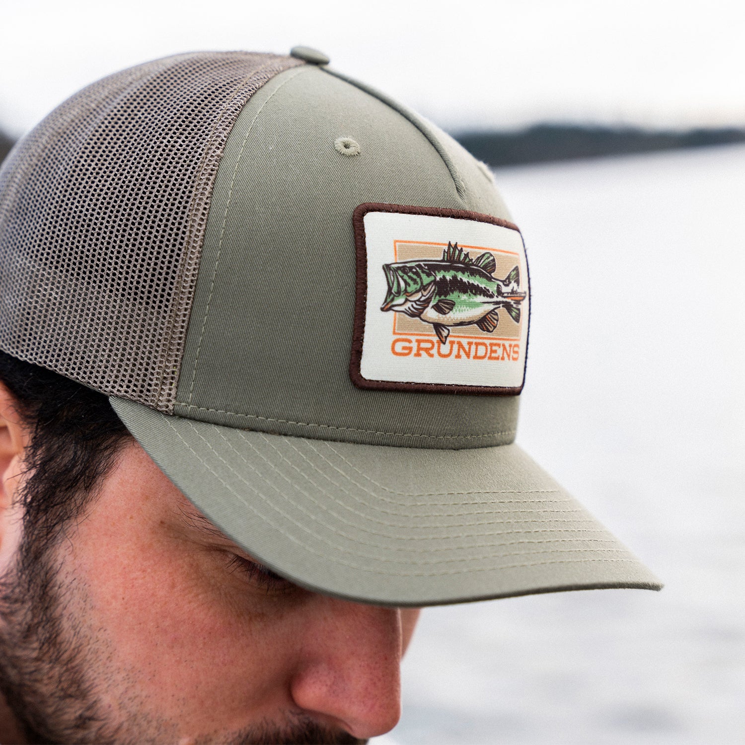 Classic, mid-crown trucker hat with an adjustable snapback closure. Offering a high-impact Grundéns "Off to the Races" Largemouth Bass design on an authentic Richardson cap.