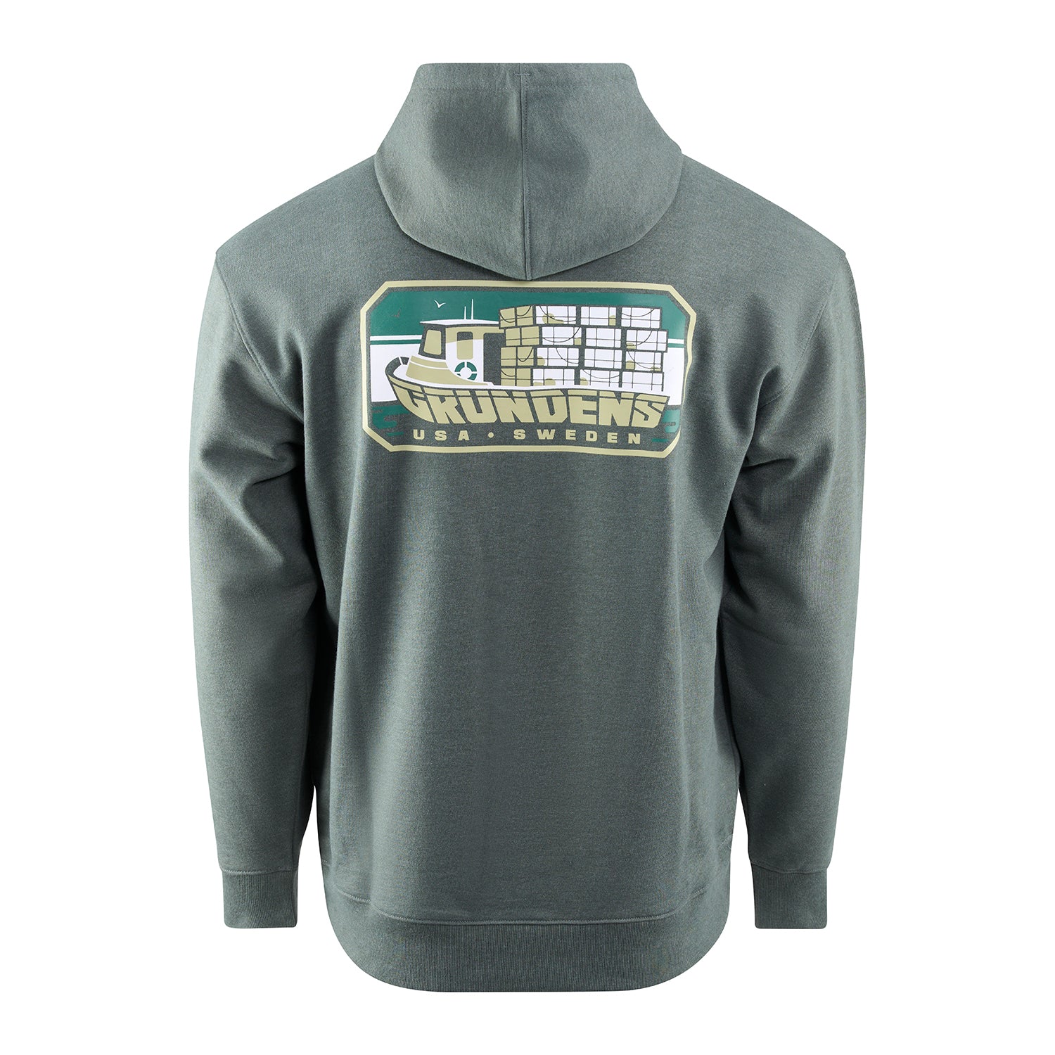 After a long day tonging and dredging the day's harvest, the hard-working oysterman is sometimes left with zero shucks given. A Grundéns original "Zero Shucks" design makes impact here on a durable, heavy-duty hoodie. This heavy-duty cut and sew hoodie is designed to keep hard working harvesters warm and protected from sea spray and light precipitation. The Durable Water Repellent (DWR) on this hoodie repels moisture and stains to keep you comfortable.
