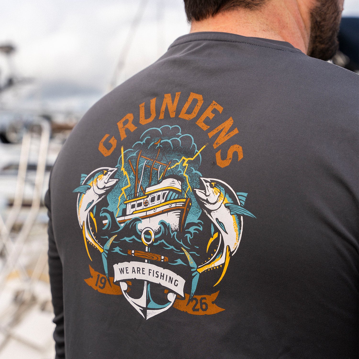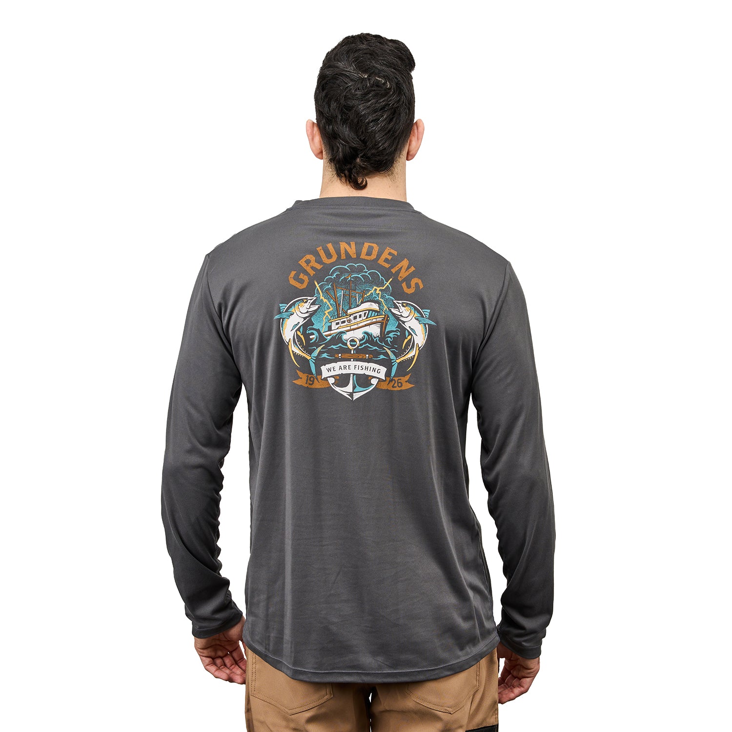 High performance UPF 50 Sun protection in the comfort and versatility of an everday tee with a fun dose of Grundéns graphics brushed Polyester is wicking, quick-drying and soft, boosted with an Anti-Odor Finish Grundéns-built from the ground up.