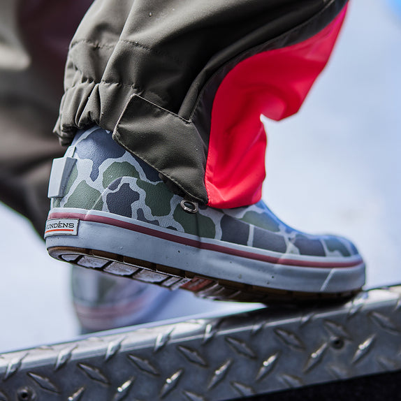 The DECK-BOSS™ collection was designed to provide anglers with comfortable performance driven footwear options that will outlast even the longest days on the water. We’ve prioritized a thicker insole to promote noticeable shock resistance, and the Anti-odor cooling liner will ensure you leave the typical footwear stench behind. Built in razor siping helps move water out from under the shoe improving grip on wet surfaces and combined with a natural gum rubber outsole, you’ll be standing upright on deck all day long.
